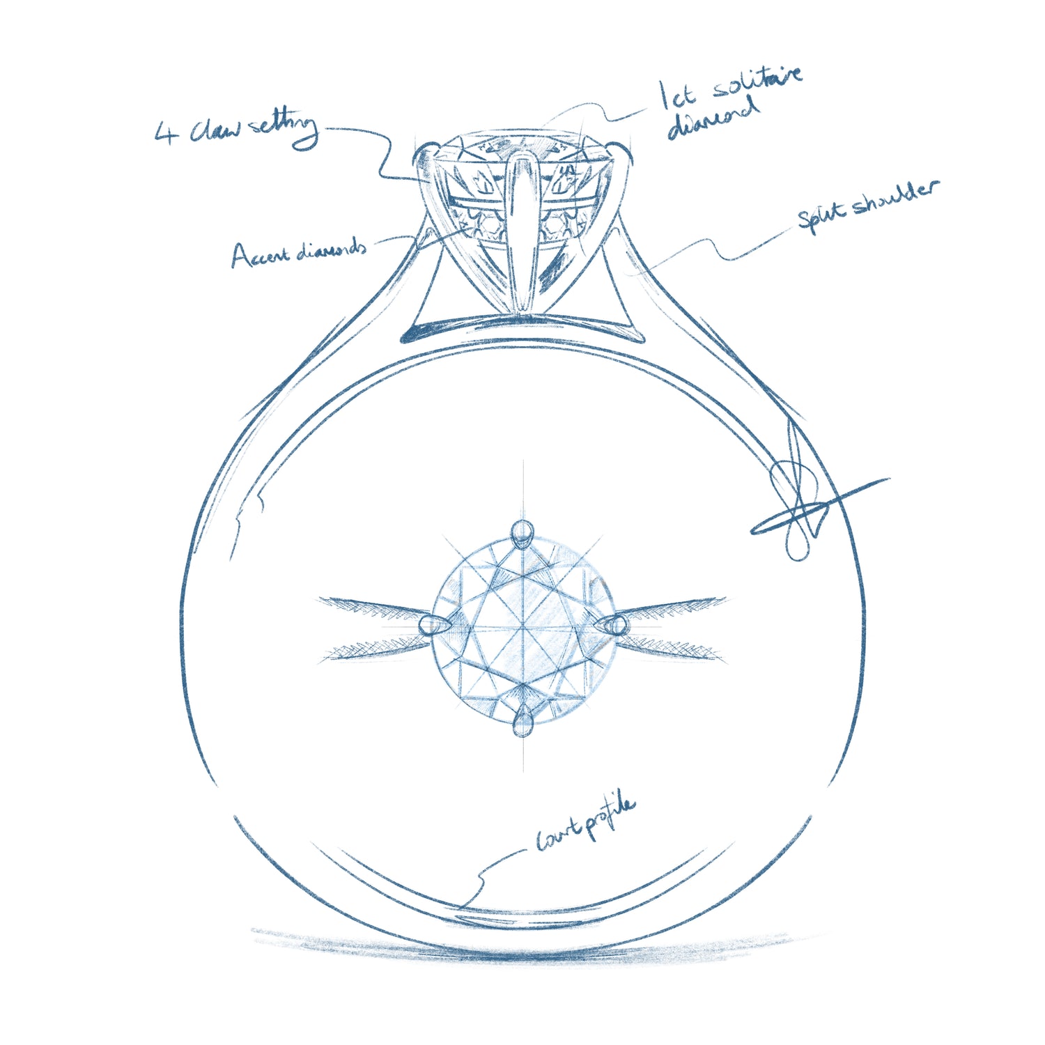 Complete the Custom Jewelry Form to receive a free quote. Share the details of your design, including your preferred center stone, metal type, diamond weight, and ring size. If you have a sketch or image of your desired piece, feel free to upload it to help us bring your vision to life.